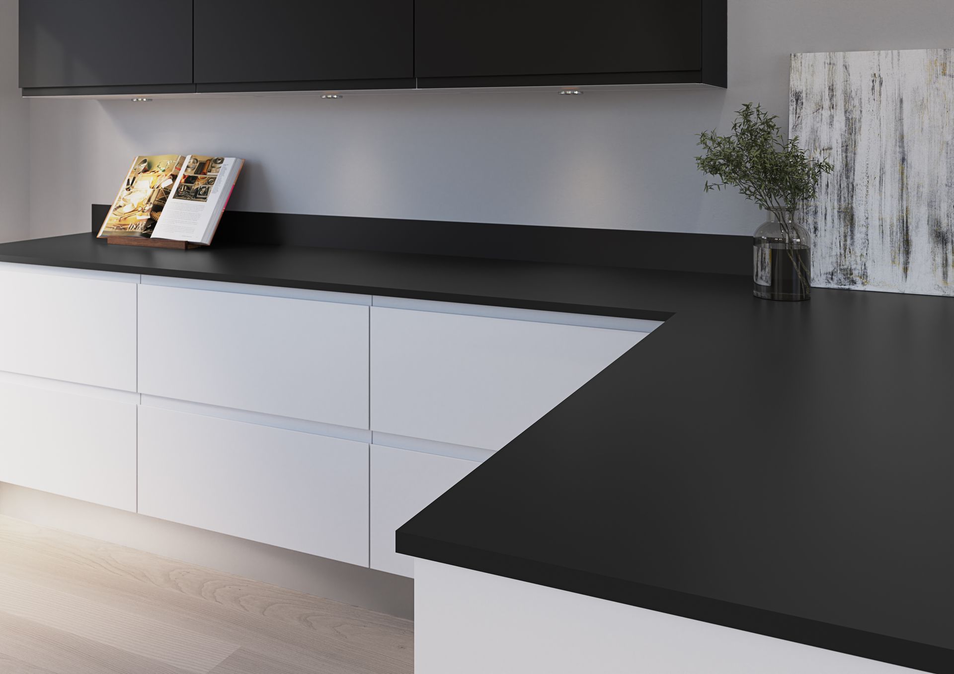 Entirely developed for versatility in modern kitchens, every surface in the Omega range is created with a 38mm or 22mm silhouette, and available in 2 different lengths and a variety of widths, with matching splashbacks and upstands.