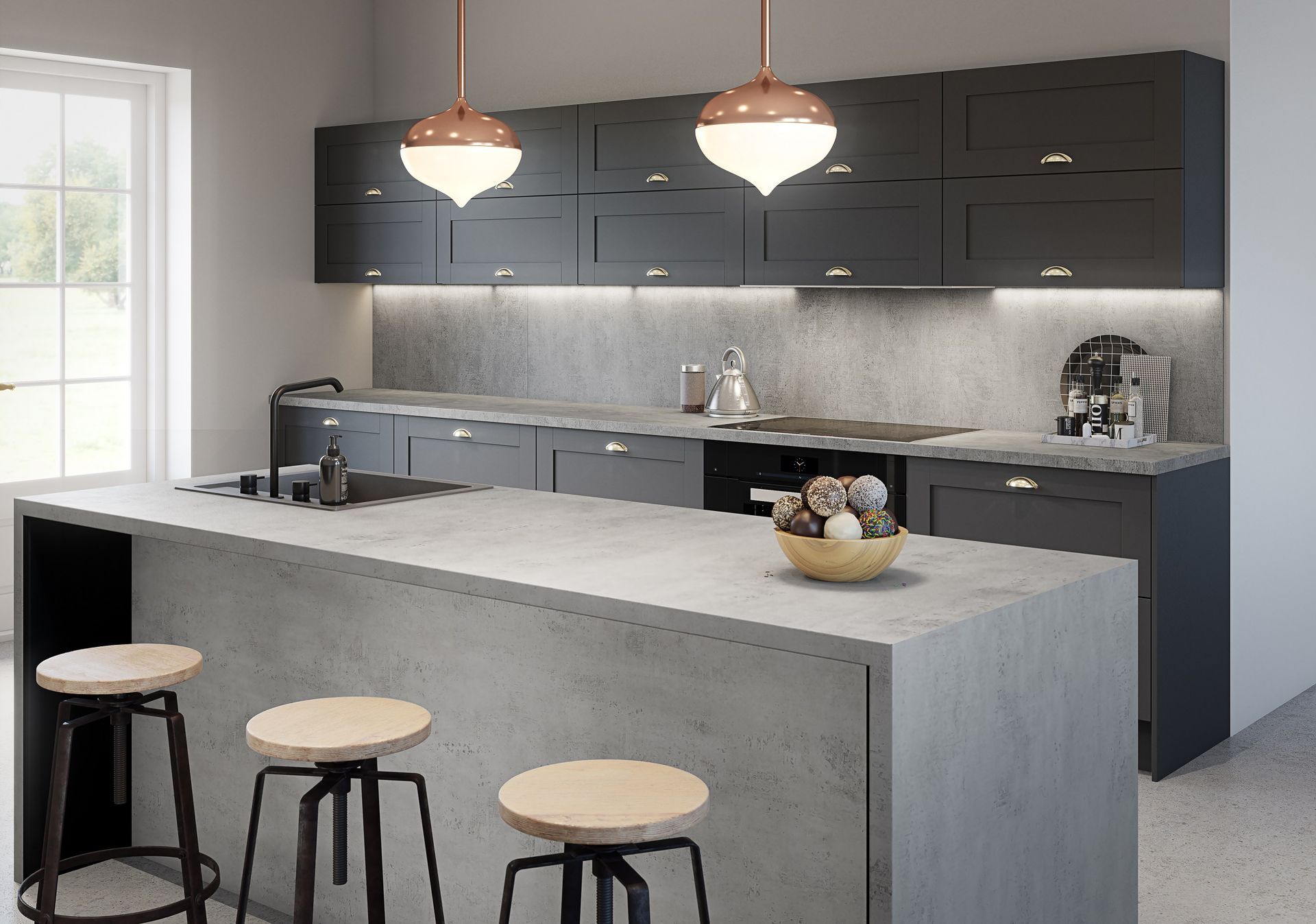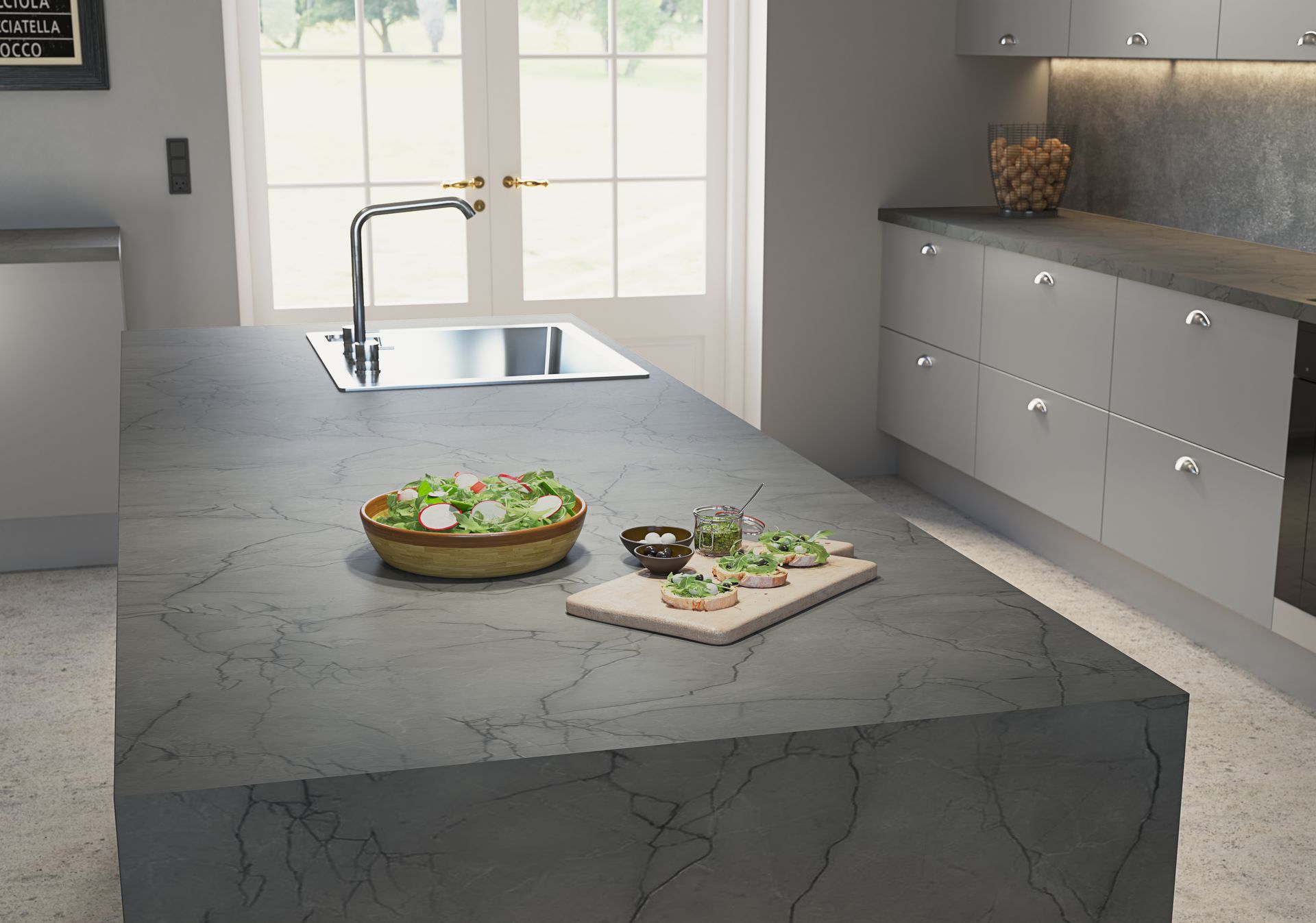Inspired by natural stones, elegant marbles, industrial concretes and modern minimalism, the Zenith worktops range comprises 20 luxurious surfaces that smooth sightlines between kitchen surfaces and furniture.