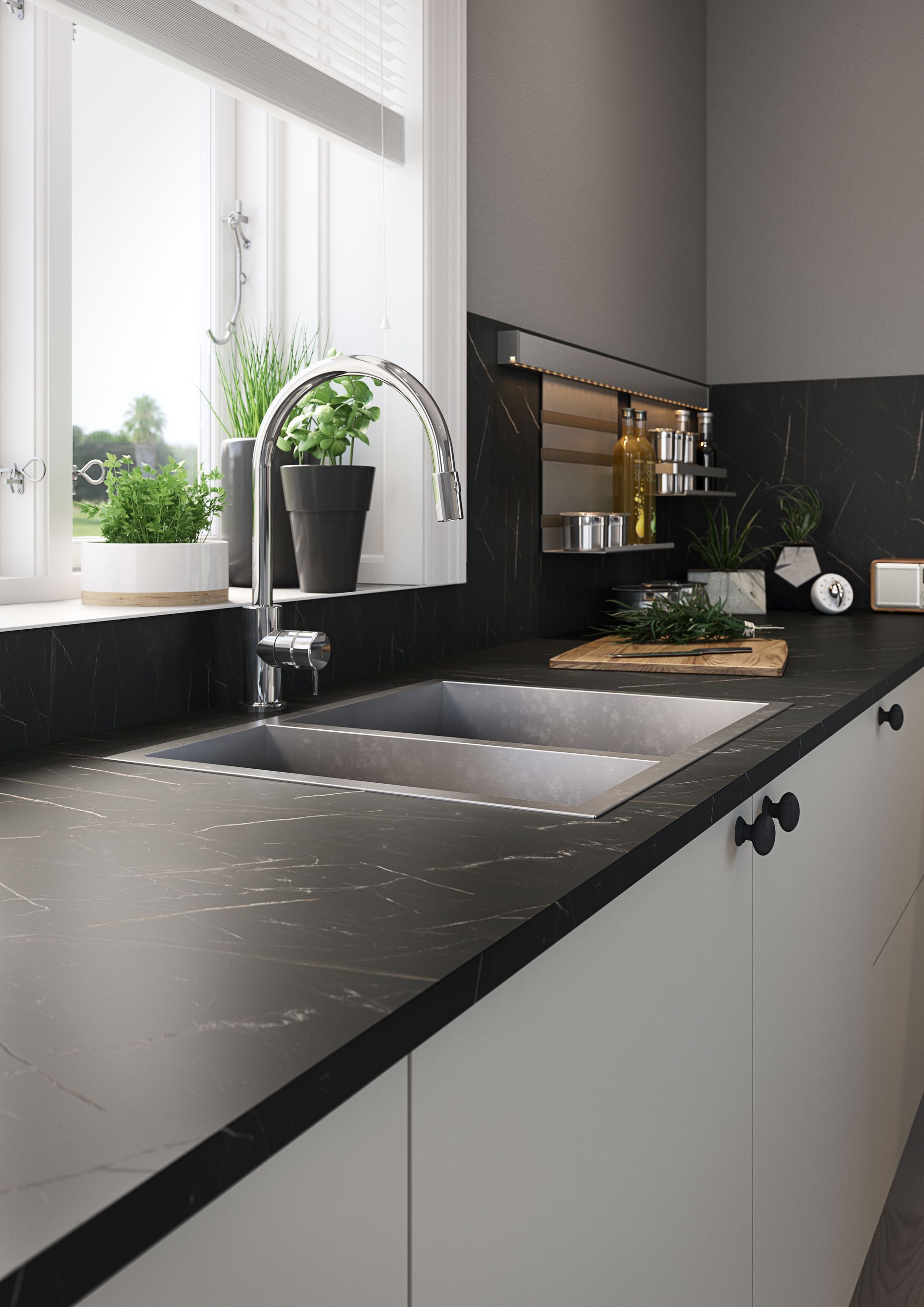 Quick and simple to install and completely waterproof, Zenith can be cut to follow curves and shapes without the need for additional edging. Unlike stone and marble, Zenith compact laminate can be measured, cut and installed in the home by a kitchen installer with regular tools, so you can achieve a showroom look without a long wait or high price tag.